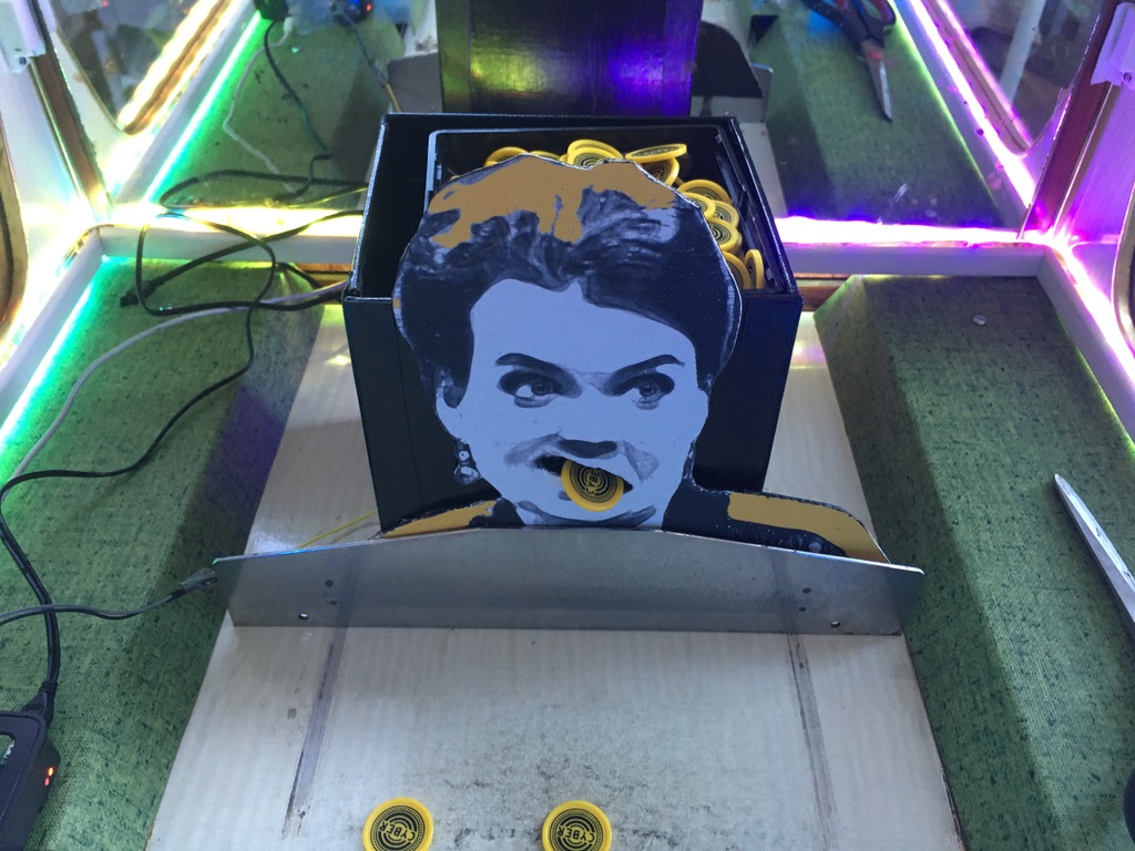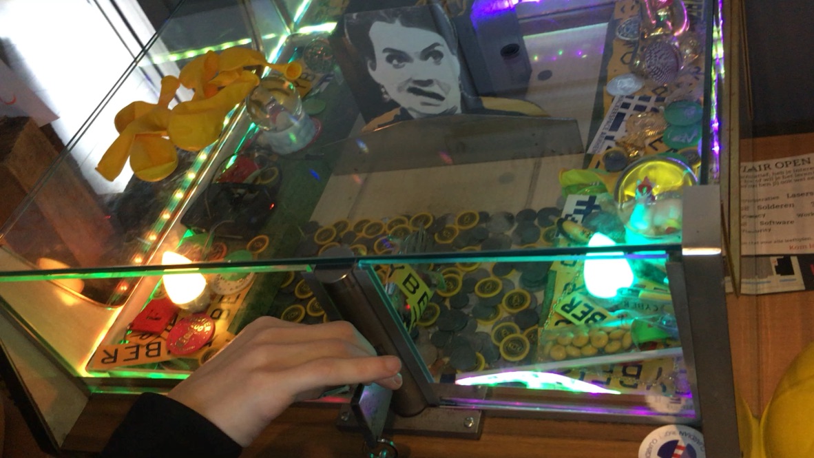 Still have a ton of coins from your last holliday? Or the holiday from your parents in 1987? Or did you just 3D print coins? Or are you still stuck with a bunch of worthless discotheque coins? Bring them and play the Cyber Pusher!